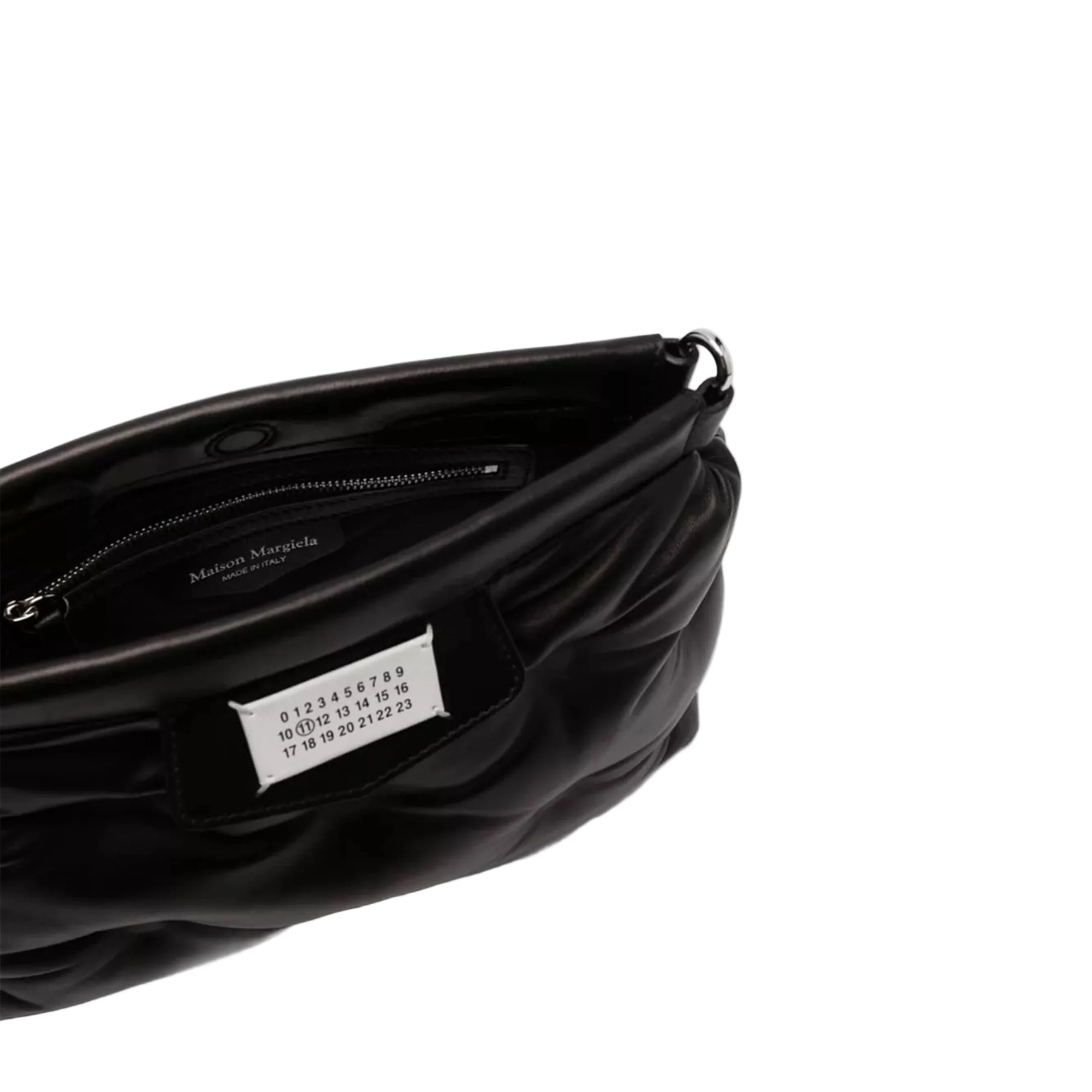 The Maison Margiela Glam Slam Classique Small Shoulder BagĀ is a refined expression of contemporary elegance, crafted in Italy from 100% supple leather in a deep dark brown tone. Featuring a structured hinge closure, this compact design balances softness and structure with Maison Margielas signature understated sophistication. The bag includes a removable and adjustable shoulder strap for versatile styling, along with a detachable zip pouch for added functionality. Measuring 30 x 19 x 8.5 cm, it embodies modern luxury and timeless craftsmanship in every detail.
